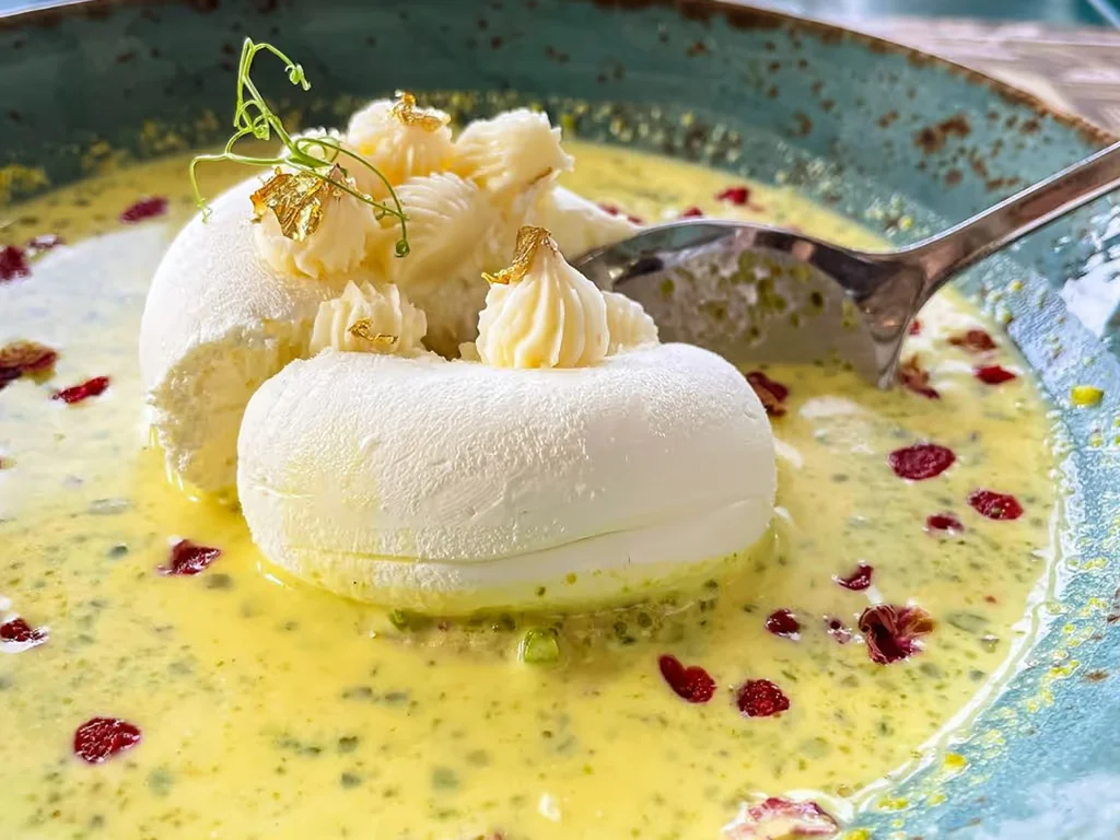 من بين التوقيعات الجذابة لقائمة الطعام "بوراتا باتر تشيكن" ، وهو الأول ليس فقط من بومباي بنجالو ولكن من أي مطعم هندي آخر في العالم ، والذي يضم تأثيرات مألوفة من الهند وإيطاليا. تشمل المأكولات الانتقائية الأخرى المأكولات النباتية "Gruyere Pav Bhaji Fondue" وفطائر "Calamari Bael" و "القاروص المشوي" التي تُقدم مع الكينوا بالليمون ، بالإضافة إلى "Raita Tray" المُعد من اختيار فردي من المكونات.