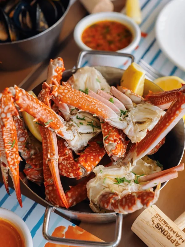 A bold, social dining experience inspired by American seafood boils, featuring crab legs, shrimp buckets, lobster, and hearty mixed platters. Lunch deals and seafood combo platters are available.